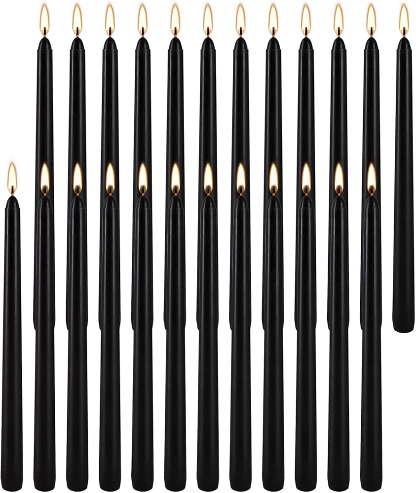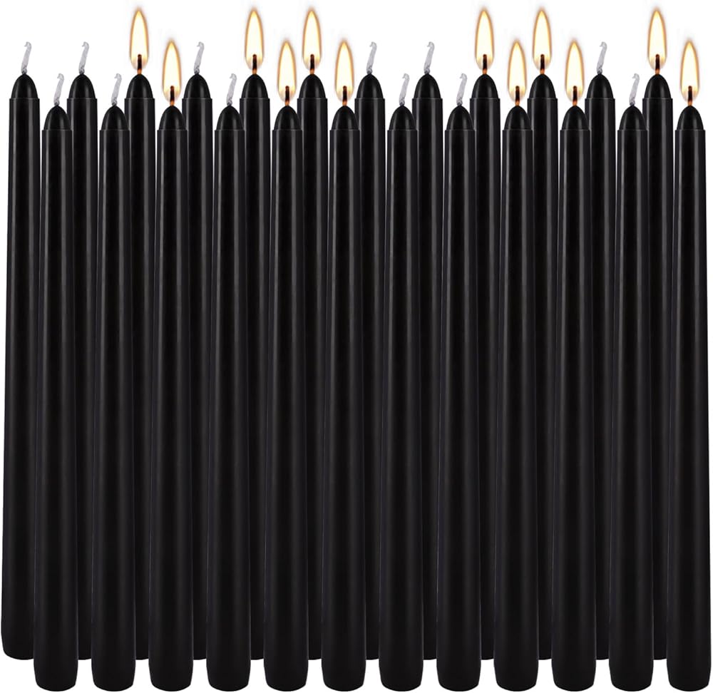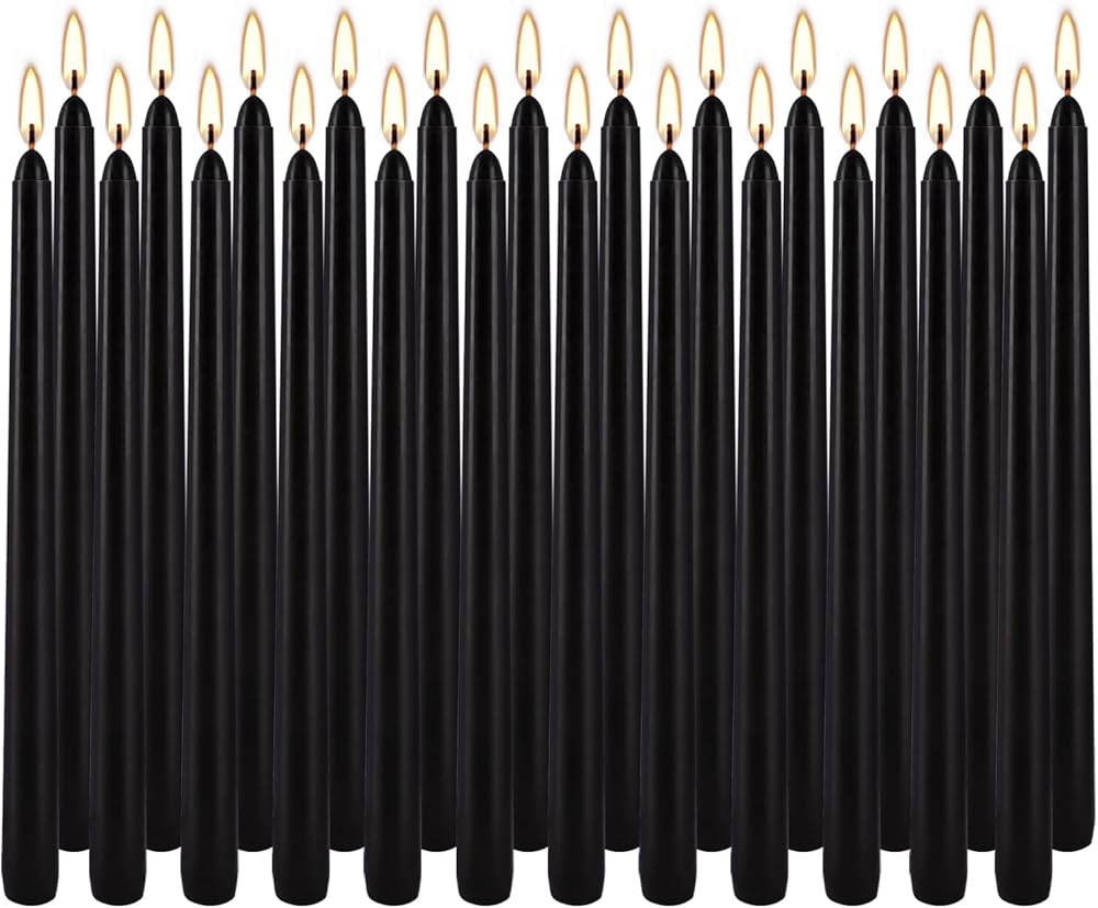 شموع مستدقة غير معطرة شموع تهجئة لحفلات الزفاف، والمذبح، والعشاء، والطقوس، والكريسماس، والوقفة الاحتجاجية، 24 عبوة من الشموع المستدقة السوداء مقاس 10 بوصة