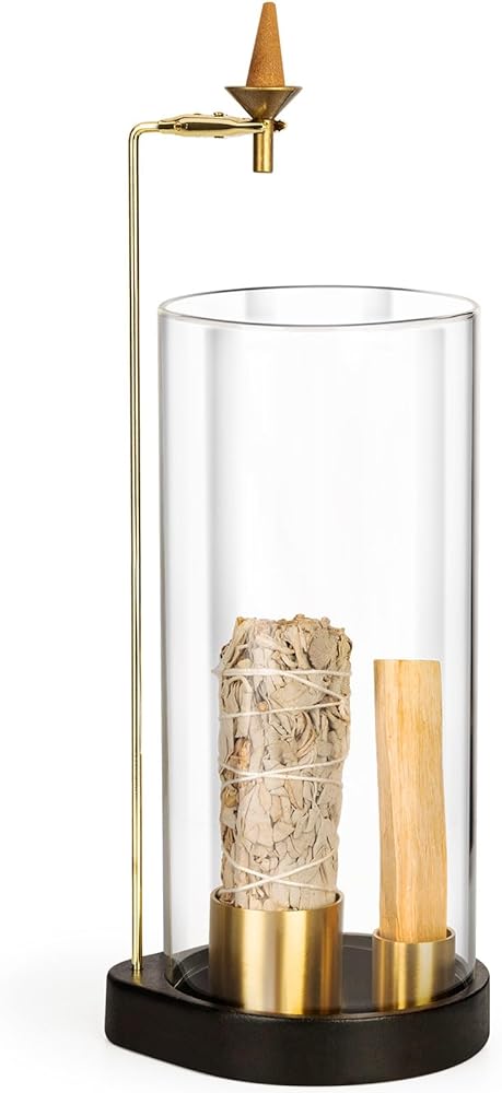 4 in 1 Wooden Incense Burner with Glass, Incense Holder for Candle, Sticks, Palo Santo, Sage and Cones, Wood Ash Catcher Tray for Meditation Yoga Room Home Decor (Glass)