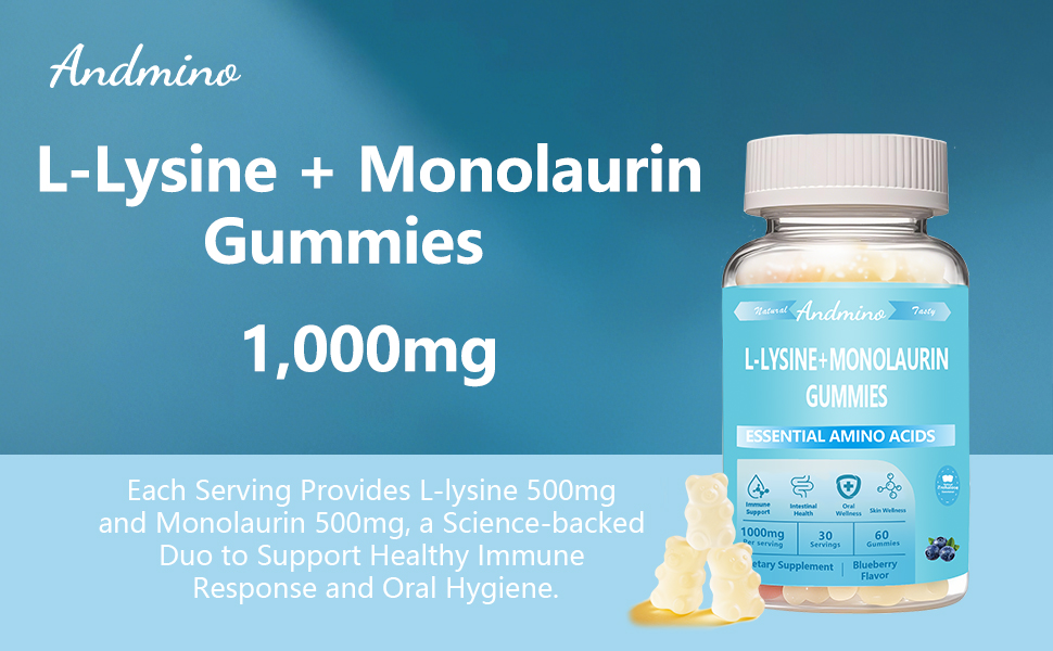 مكملات L Lysine Monolaurin Gummies: مكملات monolaurin وlysine توفر كل جرعة l lysine 500mg وmonolaurin 500mg، وهو ثنائي مدعوم علميًا لدعم الاستجابة المناعية الصحية ونظافة الفم، مثالي للتحديات الموسمية أو السفر.