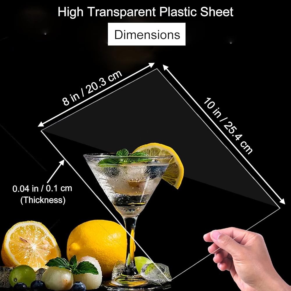 Clear Plexiglass Sheet 8x10", 0.04” thick Plastic PET Sheet Panel