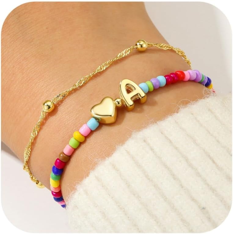 ●المادة: السوار الأولي الأنيق مصنوع من الخرز الملون وحروف من النحاس، يمكنك الذهاب إلى الشاطئ، والدخول في الماء ولن يتغير اللون. التصنيف العمري الموصى به: 15+.