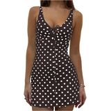 - التصميم: نقاط بولكا، بدون أكمام، ربطة أمامية، ملابس الحفلات الريفية