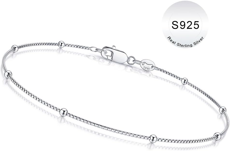 تصميم سوار الخرز الصناعي: يتميز هذا السوار الفضي S925 الأنيق بخرز قمر صناعي رقيق مقاس 0.8 مم مع سلسلة مربعة مقاس 2 مم تخلق بريقًا رقيقًا. يعمل التصميم المعاصر بشكل جميل بمفرده أو مع طبقات أخرى من الأساور للحصول على تصميم شخصي