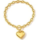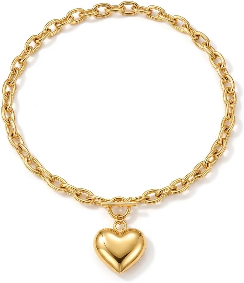 تصميم أنيق على شكل قلب: أظهر حبك وثقتك مع هذا السوار الذهبي المكتنز للسيدات، والذي يتميز بقلادة قلب مصقولة على سلسلة ربط جريئة. يضيف تصميمه الخالد لمسة عاطفية إلى ملابسك، وهو مثالي للتعبير عن الأناقة والأنوثة كل يوم.