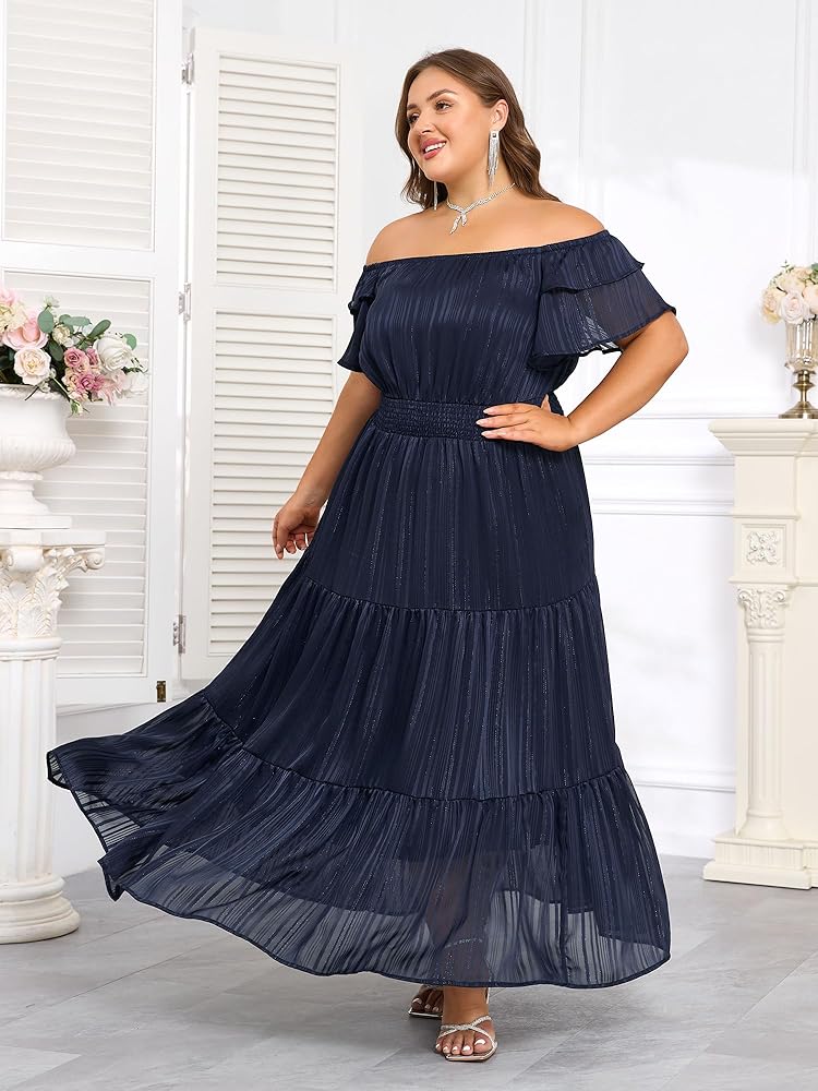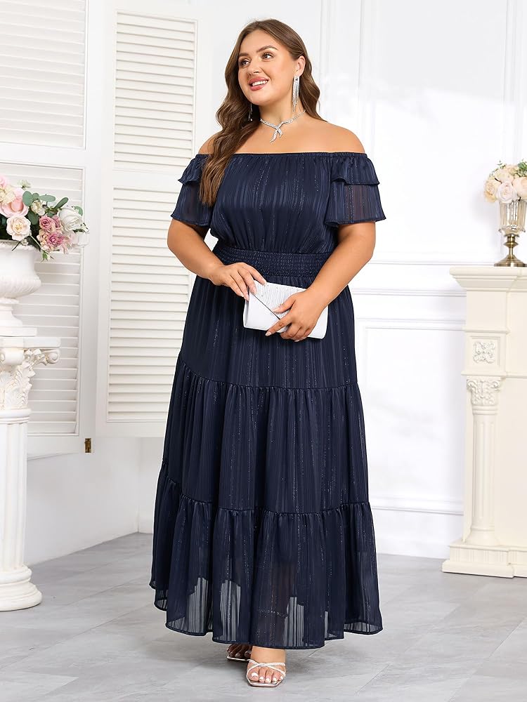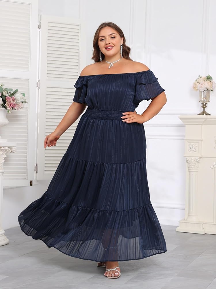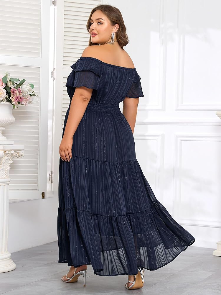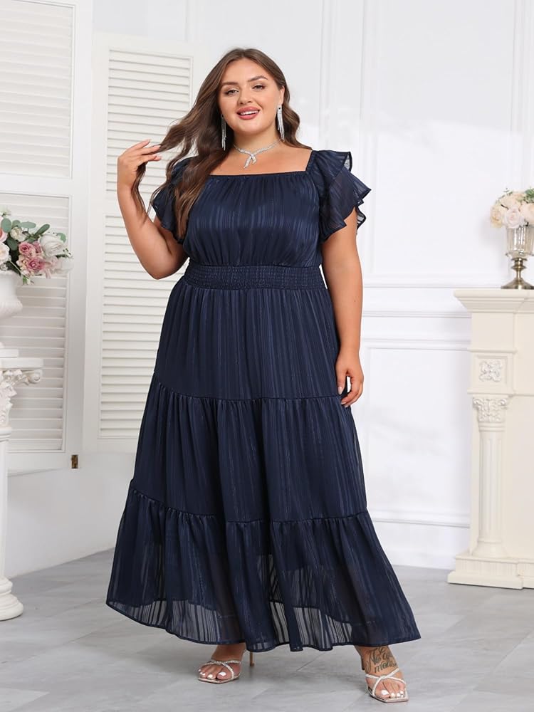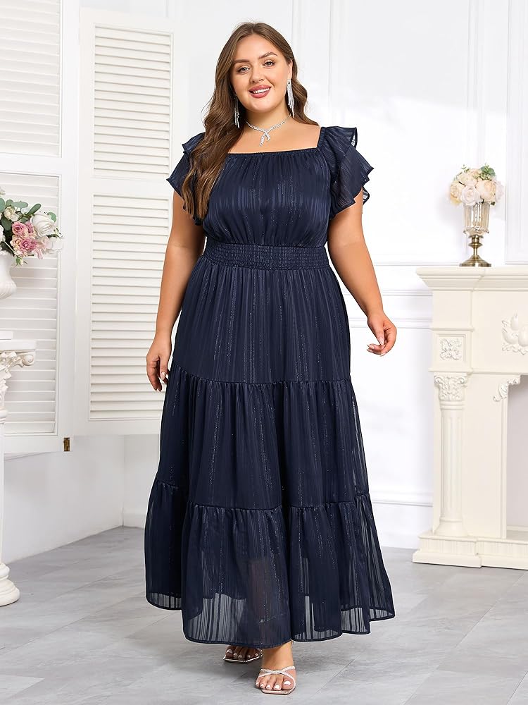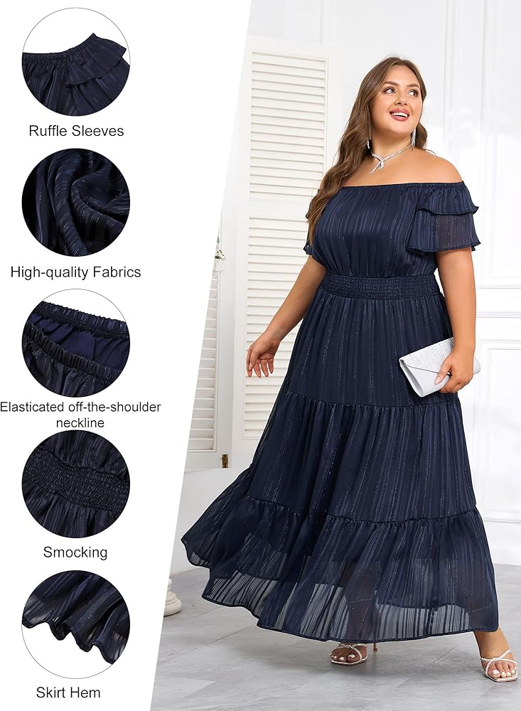 【المميزات】: رقبة مائلة مع خيارات نمط مزدوج، وأكمام فراشة ذات طبقات، وخصر مرن، وتفاصيل مكشكشة، وأنماط مخططة وطول طويل. مصمم خصيصًا لتعزيز منحنيات النساء ذوات الحجم الزائد.