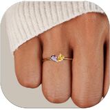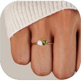 Unique Overlapping Heart Design:This elegant ring features two pear-cut cubic zirconia stones artfully arranged in an overlapping heart shape, representing two special birth months. The stones are set at different heights to create a beautiful sense of movement, symbolizing the dynamic bond between loved ones.
