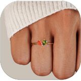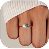 The Overlap Heart Birthstone Ring features two pear-cut cubic zirconia stones arranged in a unique overlapping heart design, representing two special birth months. Crafted from tarnish-resistant 14K gold plating, this adjustable ring (approximately size 6-10) offers a comfortable fit with its flexible band and lightweight 2.5g design. The stones are set at different heights to create beautiful light play and movement. With 78 possible birthstone combinations, it's the perfect sentimental gift for mothers, daughters, sisters, or couples. Each stone carries special meaning - from January's garnet (loyalty) to December's tanzanite (fortune) - making this ring a meaningful way to celebrate any relationship.