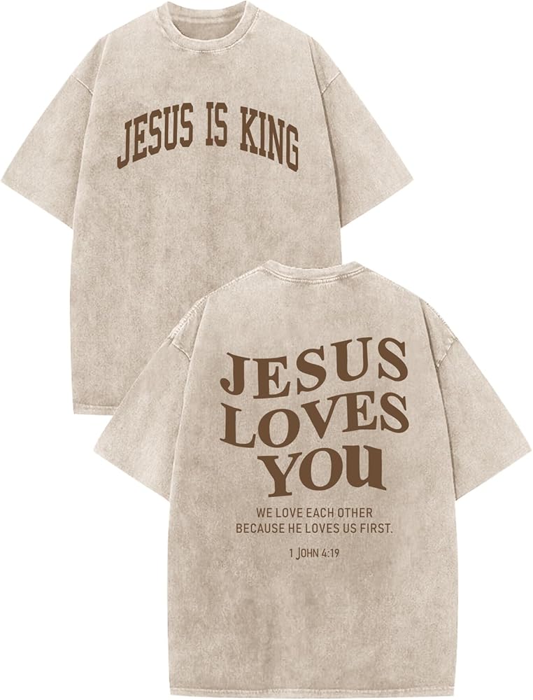 المزايا: قميص مسيحي كبير الحجم بأكمام قصيرة، قمصان يسوع هو الملك، قميص يسوع يحبك، قمصان الله، قميص الإيمان فوق الخوف للرجال، قمصان آية الكتاب المقدس للرجال، تي شيرت رجالي عتيق مغسول بالحمض، تي شيرت بأقوال يسوع، قمصان دينية للرجال