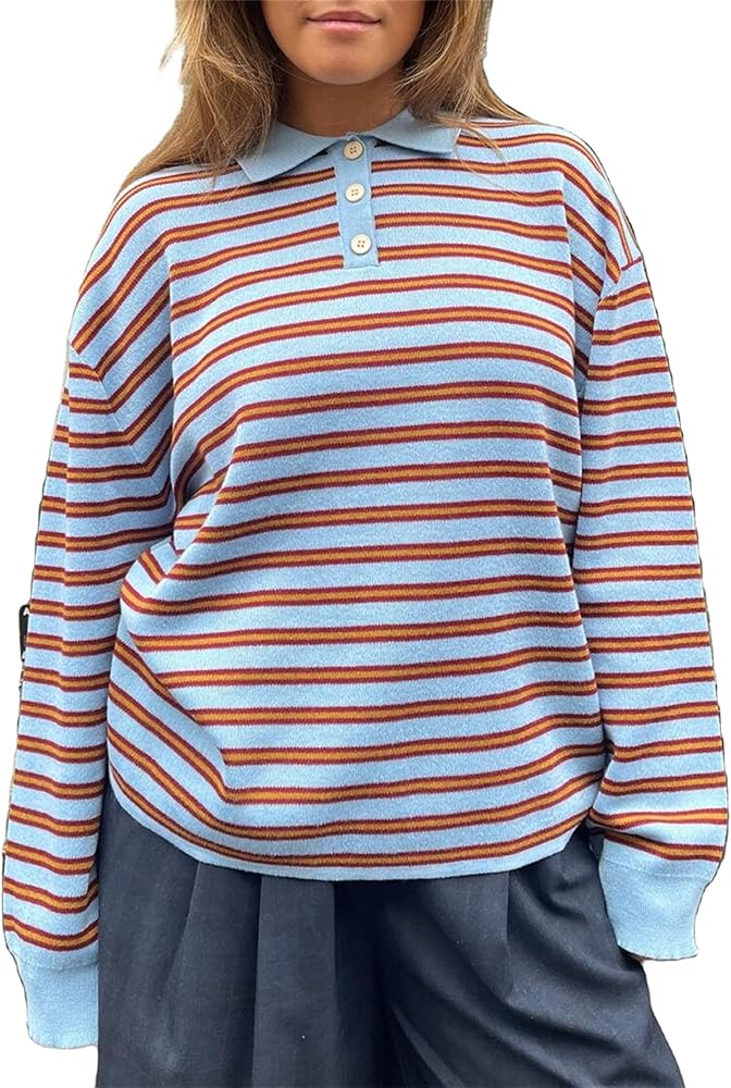 Elevate your wardrobe with our Women's Oversized Striped Knit Shirt
