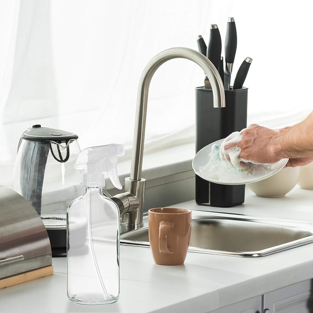 DISHWASHER SAFE: The clean, modern glass design of this set means it's completely dishwasher safe! The bottles are free of lead, cadmium and BPA, which can cause that horrible plastic smell that often seeps into liquids, making them perfect for cosmetic solutions, household cleaners and as a plant mister!
