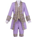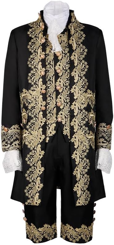 The detailed lacework and ornate designs are reminiscent of 18th-century European court fashion, perfect for theatrical performances, costume parties, or historical reenactments. The high collar and fitted silhouette embody the sophisticated style of Victorian aristocracy. Each piece is carefully crafted to capture the essence of period clothing, from the decorative buttons to the sweeping coat tails. This Medieval Rococo Court Style Prince costume transforms any wearer into nobility, making it an ideal choice for Renaissance fairs, masquerade balls, or any event requiring refined historical attire.