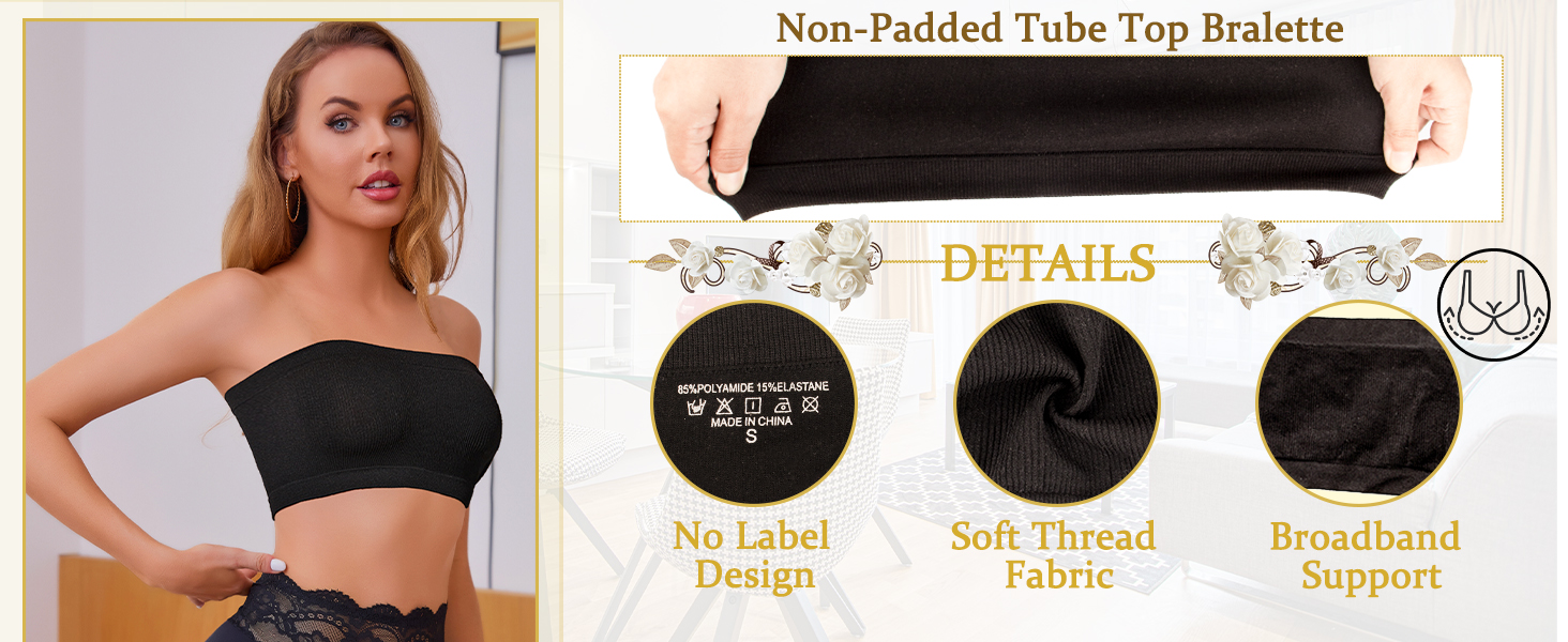 • تصميم بدون حمالات وغير مبطن: حمالات صدر للنساء بدون حمالات توفر غطاء مشابه لحمالة الصدر العادية، مما يزيل متاعب أحزمة الكتف؛ التصميم بدون بطانة لن يسبب أي إزعاج أثناء الارتداء