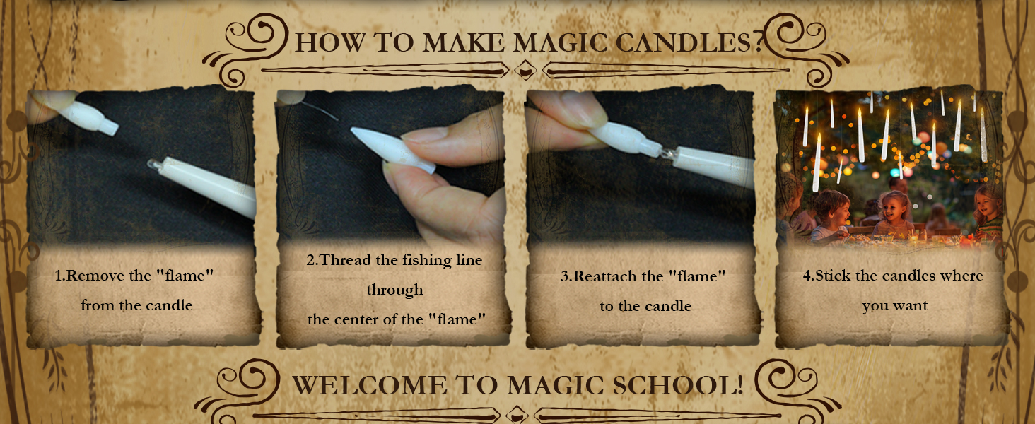 هل تريد بعض السحر؟ يمكن أن تساعدك الشموع العائمة ذات العصا على خلق جو أكثر سحراً! في اللحظة التي تفتح فيها الشموع المعلقة، يبدو الأمر وكأنك دخلت عالمًا سحريًا خلال العيد الاحتفالي. هذه الشموع السحرية ستجعل ضيوفك مقتنعين بأنك ساحر أو ساحرة بدعوة سرية إلى مدرسة السحر!
