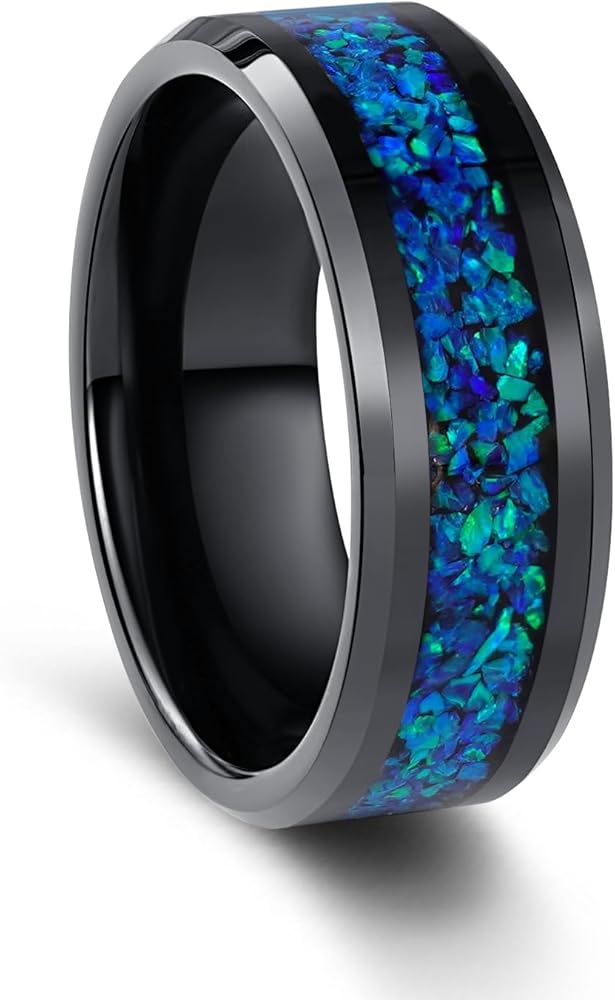 خاتم التنغستن الملكي الوردي المحيطي الأزرق الليلي المرصع بالنجوم، خاتم زفاف أرجواني أوبال أسود 8/4 مم للرجال والنساء، هدية عيد الميلاد والذكرى السنوية in Kuwait