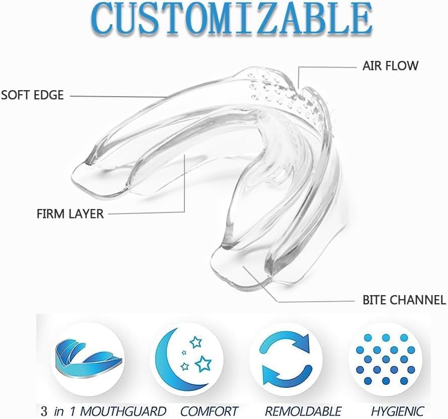 • مريح وفعال: واقي الأسنان خالٍ من مادة BPA، ومضاد للانزلاق، ومتين، وخفيف الوزن. كما أن تجربة ارتداء واقي الفم الخاص بنا مذهلة تمامًا عند استخدامها في وقت النوم، أو العمل أثناء النهار، أو السفر، أو ممارسة الرياضة، وما إلى ذلك.