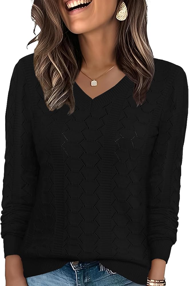 • 【Features】 – These long sleeve v neck fall sweaters for women 2025 feature a hollow-out knit design that is both stylish and flattering for all body types. The deep V-neckline beautifully highlights your collarbone, while the relaxed silhouette brings a touch of femininity and chic style. These trendy womens shirts gracefully combine comfort with elegance.