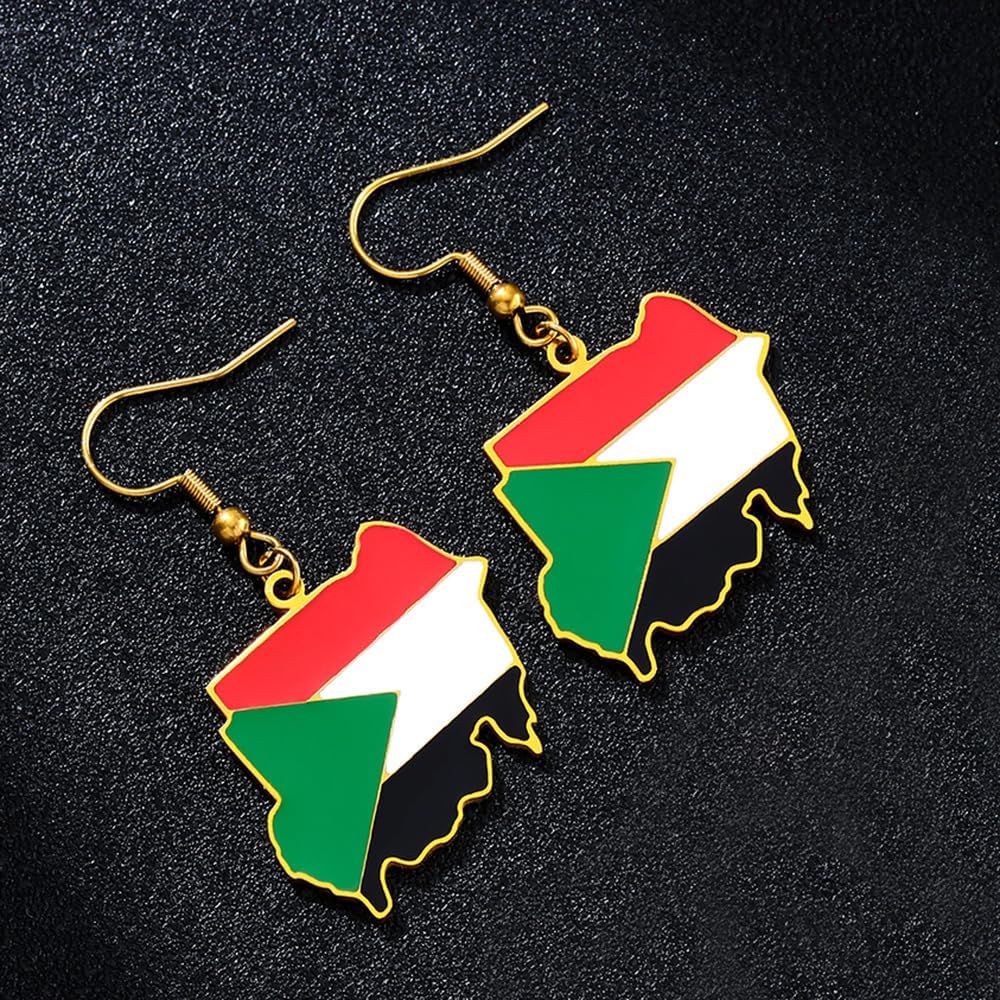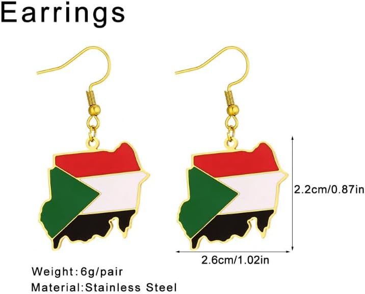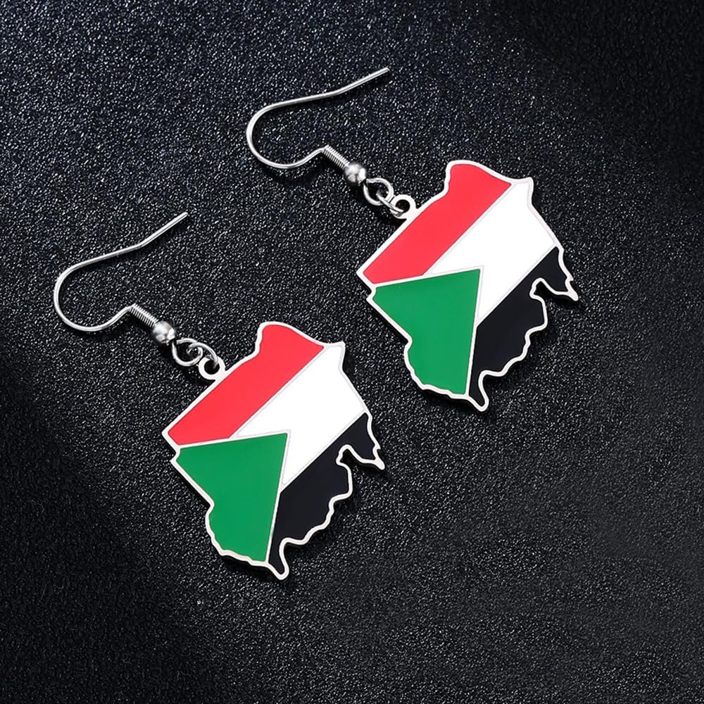 زوجان من أقراط علم خريطة السودان - قلادة علم من الفولاذ التيتانيوم على الطراز العرقي، تذكار سفر السودان، إكسسوارات المناسبات الرياضية والاحتفالات بالمهرجانات