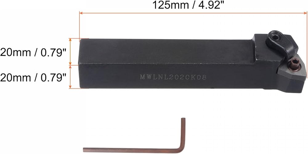 - [محتوى العبوة] - سوف تحصل على قطعة واحدة MWLNL2020K08 20 مم / 0.79 بوصة حامل أدوات تحويل المخرطة (حشوة الكربيد غير متضمنة) وقطعة واحدة مفتاح ربط 3 مم.