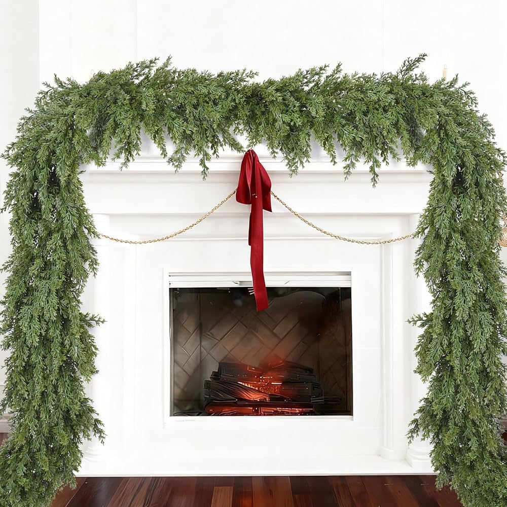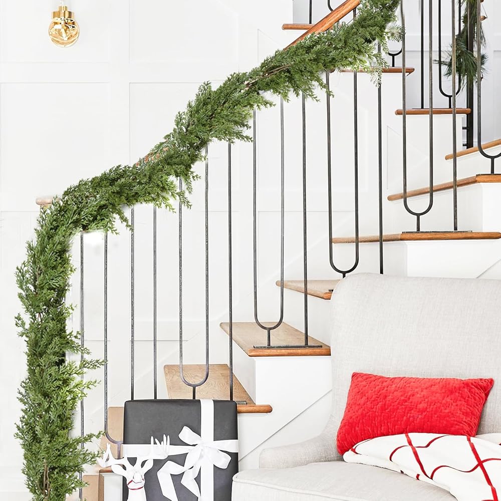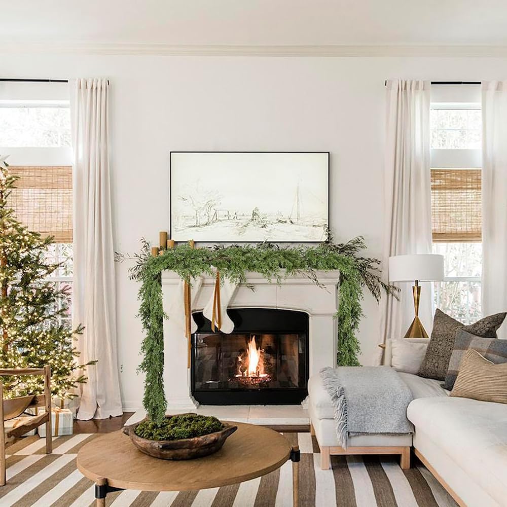 Get into the spirit of Christmas! What better way to capture the Winter season than with a pine garland on your mantel or across your front door frame? Beautiful Colors Warm Up Your Home If you're looking to spruce up the entryway, cozy up those indoor plants, or add some green color to the centerpiece on your dining table, this 9 feet Christmas Pine Garland helps bring the color of the nature right into your home this winter! Make this winter no longer boring.