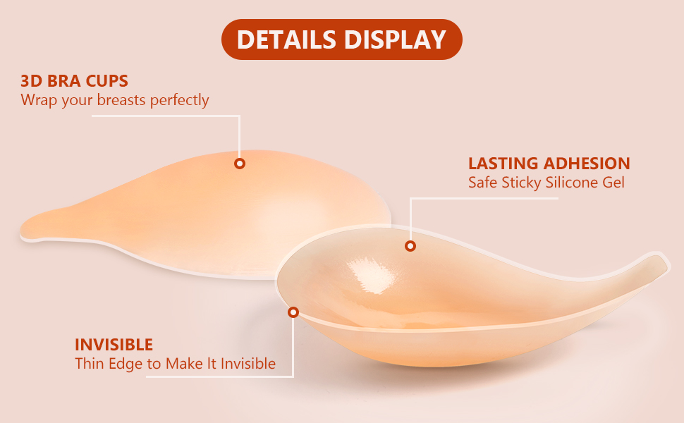 تصميم ملعقة إنساني: توفر حمالة الصدر ذات التصميم على شكل ملعقة وقتًا أطول للالتصاق وتلتف بشكل أفضل حول جلد صدرك، مما يجعلها تبدو وكأنك لا ترتدي شيئًا على الإطلاق، مما يحافظ على صدرك في وضع جيد لمنع الترهل.