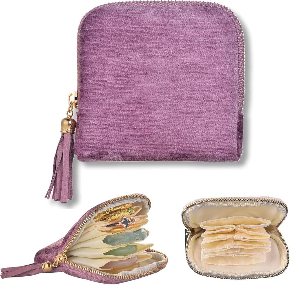 Forlisea Small Travel Jewelry Case Portable Jewelry Pouches jewelry bag Soft velvet jewelry storage bag ring Holder for Travel bag makeup bag for women