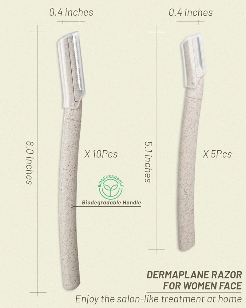 عبوة اقتصادية مكونة من 15 قطعة - تأتي مجموعة أدوات تقشير الجلد الخاصة بنا مع 5 قطع قصيرة (13 سم) و10 قطع طويلة (15 سم). ماكينة حلاقة الوجه الأطول للمناطق الأكبر من إزالة الشعر، وشفرة الوجه الأقصر لإصلاح أكثر دقة