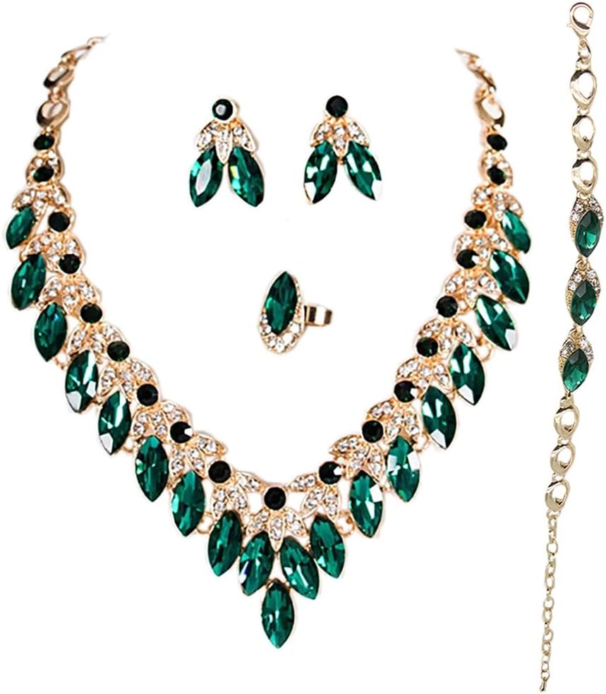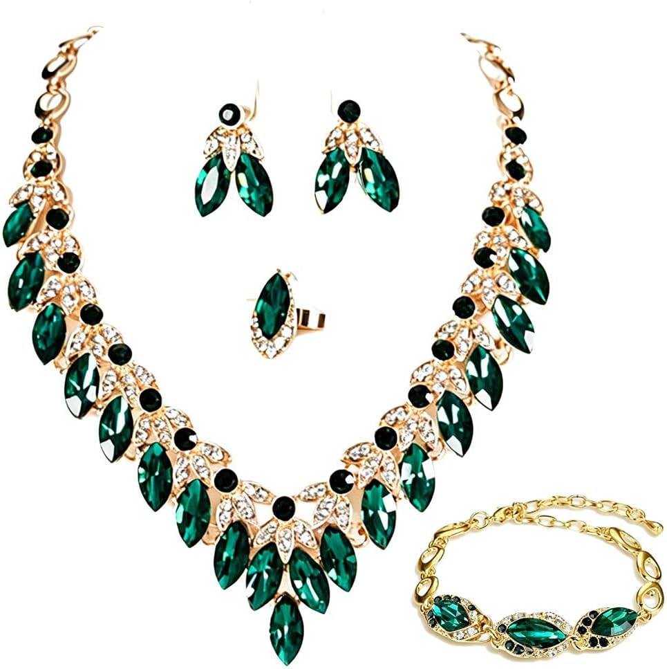 • COMPLETE SET: Stunning 4-piece bridal jewelry collection includes statement necklace, matching earrings, bracelet, and ring for a coordinated look