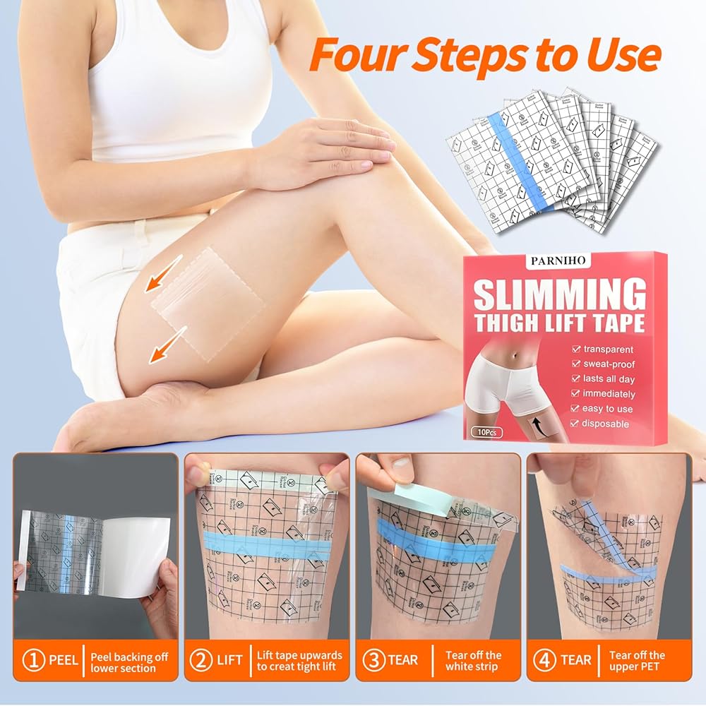 شريط رفع الفخذ للبشرة الرخوة، رقعة رفع فورية للساقين، شرائط لاصقة شفافة لرفع الجلد المترهل على الفور، شريط مقاوم للماء للجسم مقاوم للعرق للنساء