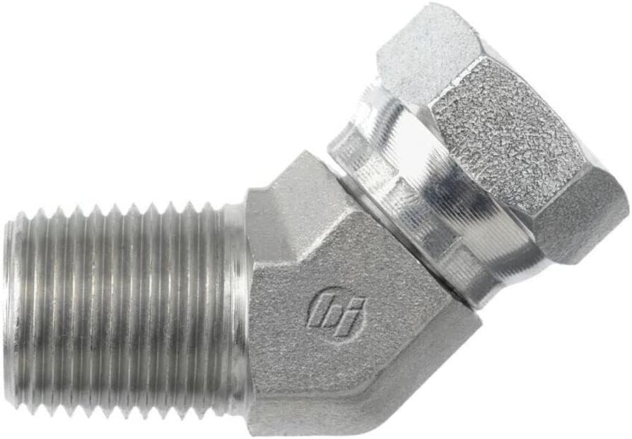 brennan Industries 1503 – 16 – 16-fg Forged محول 45 درجة الكوع من الفولاذ المقاوم للصدأ ، 1 " ذكر nptf x 1 " أنثى الأنبوب دوار ، 1.500 " سداسية الرأس