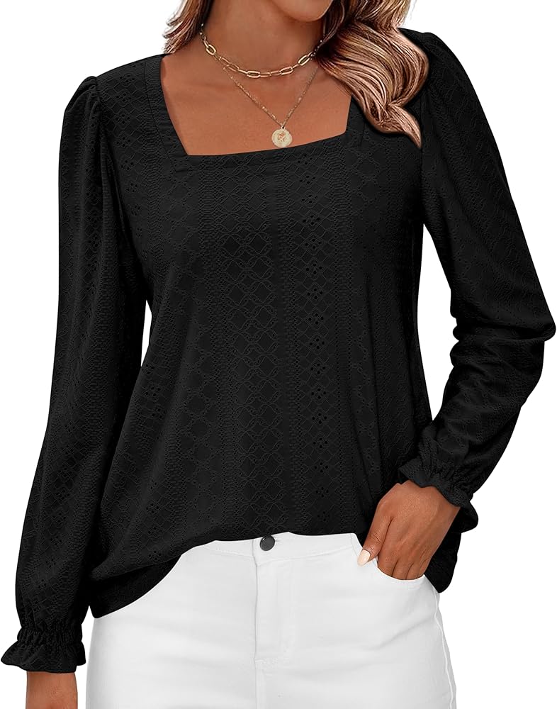 المميزات: S=US 4-6، M=US 8-10، L=US 12-14، Xl=US 16-18، XXl=US 20؛ قمصان طويلة الأكمام للنساء / رقبة مربعة / كم طويل مع تصميم معصم مرن / تصميم العيينة / خفيفة الوزن / فضفاضة / مناسبة للربيع والصيف والخريف