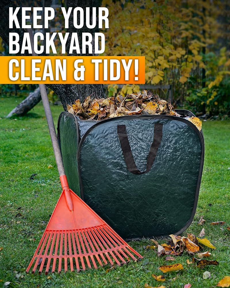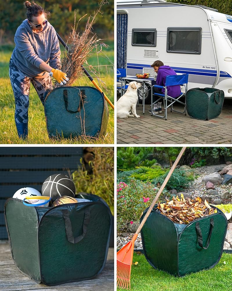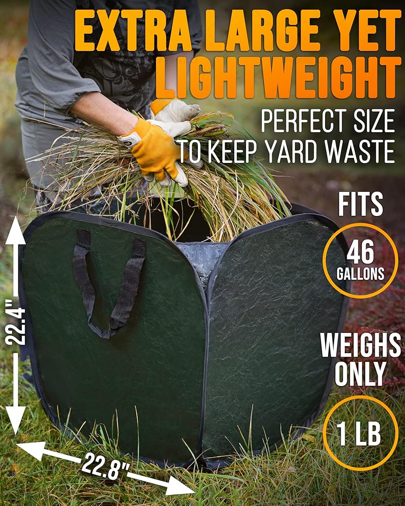 STURDY & DURABLE - Lightweight yet sturdy. Thick material makes this trash can a perfect lawn or collapsible garden bag. It makes it so much easier to keep all the trash or garden waste in one place.