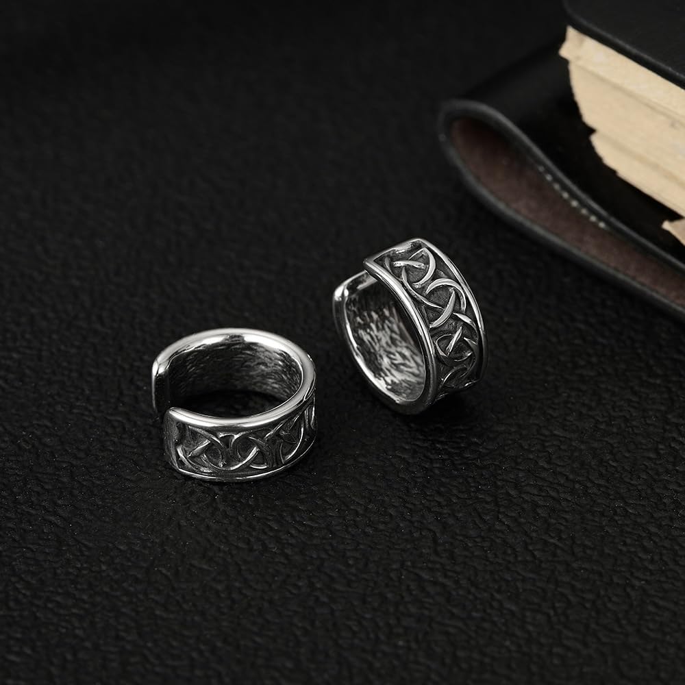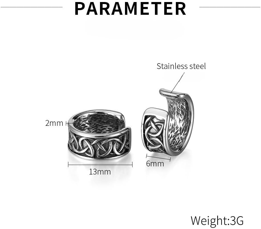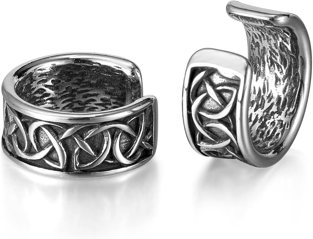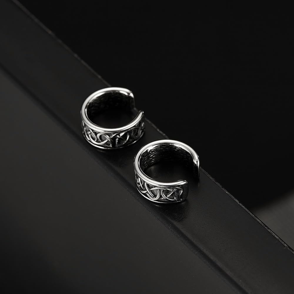 Rockyu's stainless steel ear cuffs are crafted in a sleek silver tone with a bold Celtic-inspired geometric pattern, adding a touch of punk and vintage vibe to your look. With a size of 13mm x 6mm and weighing just 3g, these non-pierced earrings provide a comfortable yet secure fit. Designed for both men and women, these clip-on ear cuffs are ideal for casual wear, hip hop style, or meaningful gifting. Keywords include: non-pierced earrings, geometric ear cuffs, punk silver ear clip, unisex stainless steel earring, clip on hoop.