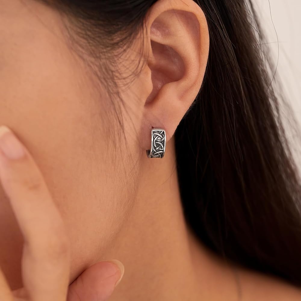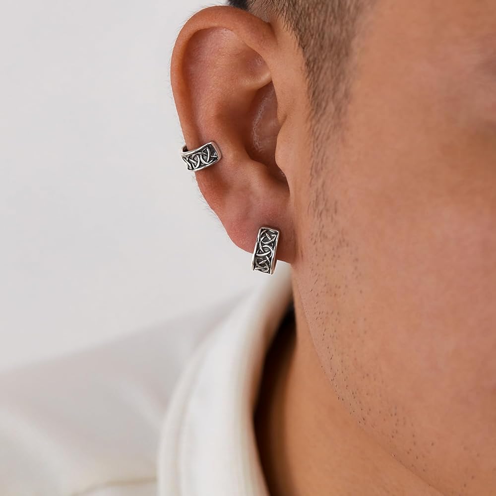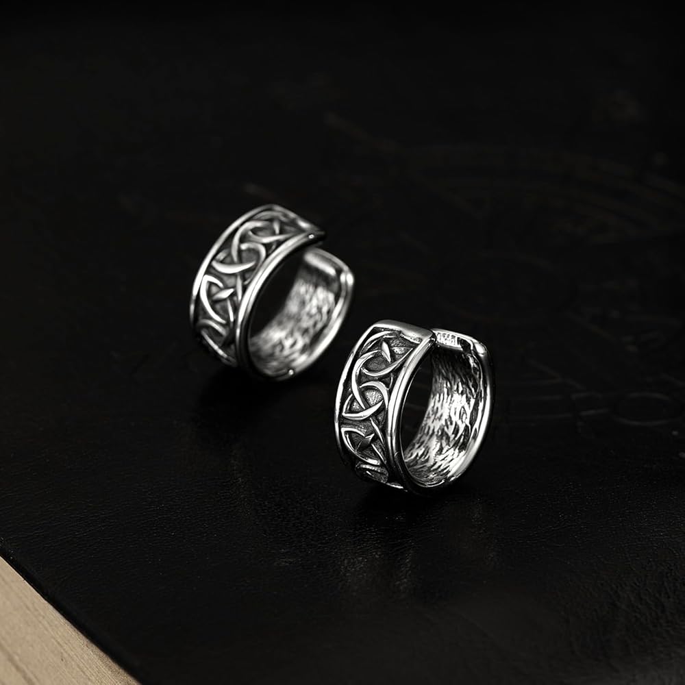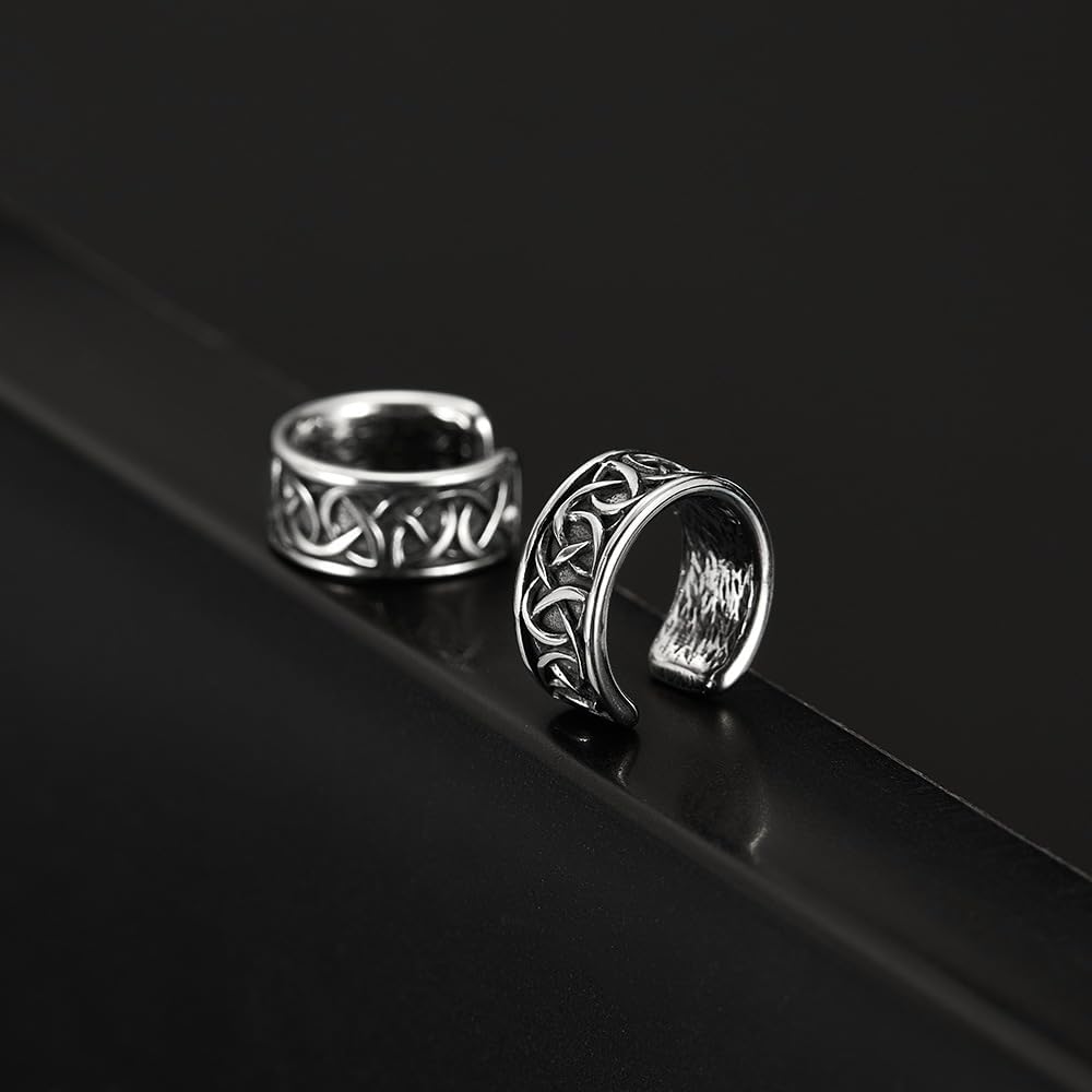 Rockyu's stainless steel ear cuffs are crafted in a sleek silver tone with a bold Celtic-inspired geometric pattern, adding a touch of punk and vintage vibe to your look. With a size of 13mm x 6mm and weighing just 3g, these non-pierced earrings provide a comfortable yet secure fit. Designed for both men and women, these clip-on ear cuffs are ideal for casual wear, hip hop style, or meaningful gifting. Keywords include: non-pierced earrings, geometric ear cuffs, punk silver ear clip, unisex stainless steel earring, clip on hoop.