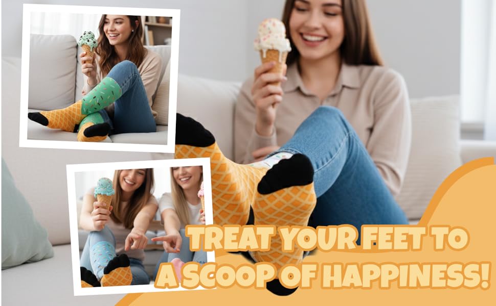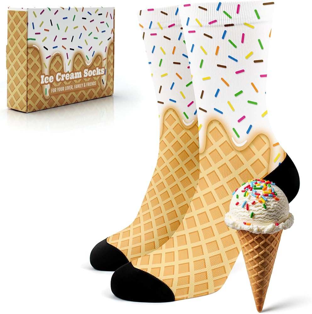 جوارب مطبوعة على شكل آيس كريم للنساء والرجال، جوارب طاقم مرحة ومبتكرة، فكرة هدية لطيفة لعشاق الطعام in Kuwait