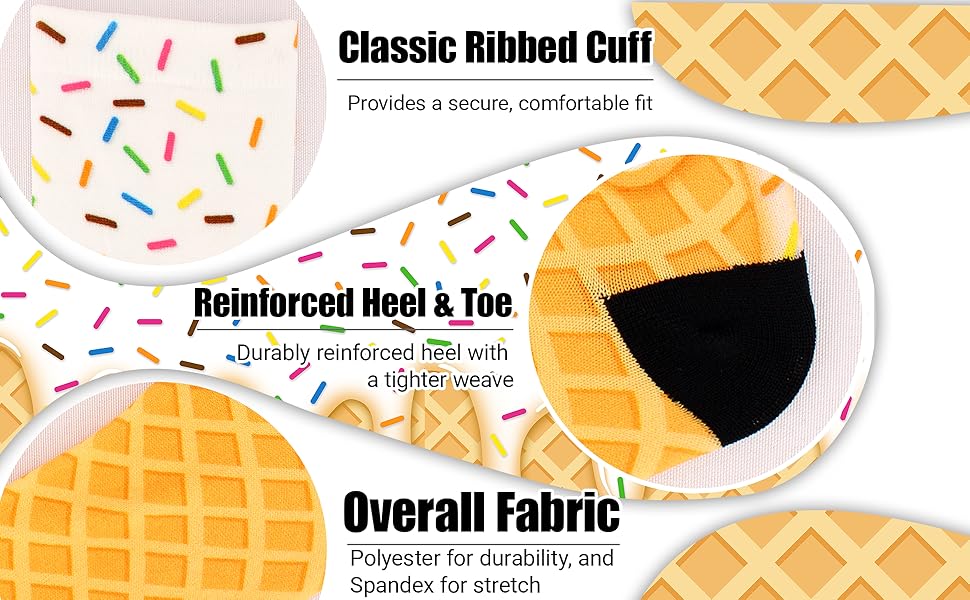 • تصميم آيس كريم رائع: اجعل يومك مشرقًا مع هذه الجوارب المطبوعة على شكل آيس كريم اللطيفة والملونة بشكل لا يصدق! تتميز هذه الجوارب المبتكرة بنمط متكرر نابض بالحياة من كرات الآيس كريم المتنوعة ومخروط الوافل، وهي طريقة ممتعة ولذيذة للتعبير عن شخصيتك الفريدة.