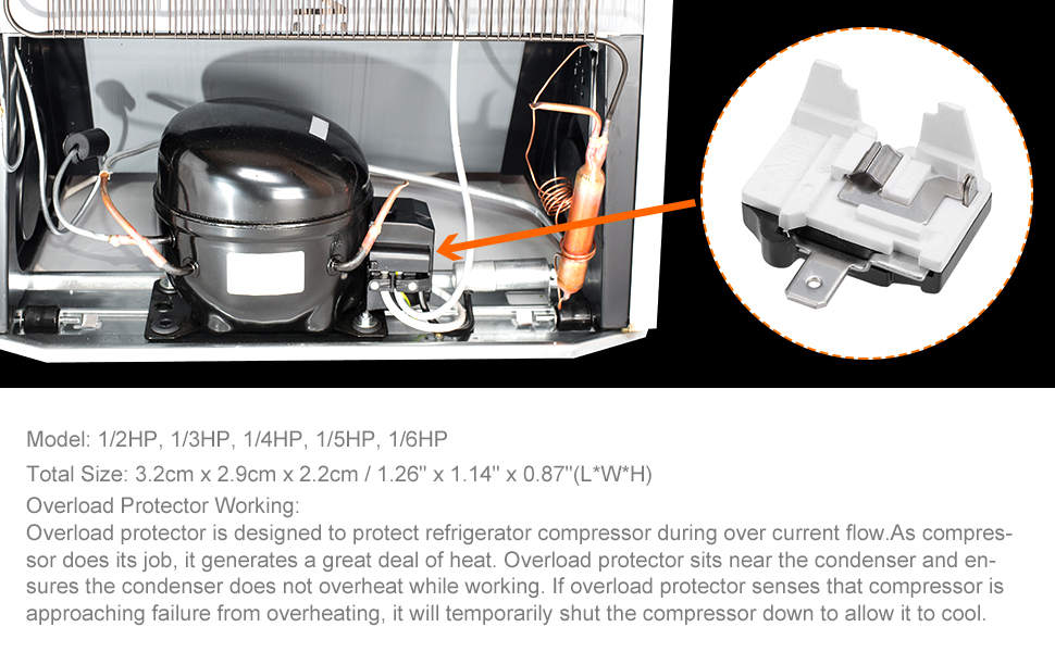 1. يتم توصيل واقي الحمل الزائد في الثلاجة بالضاغط وإيقاف تشغيل الضاغط إذا كان محرك الضاغط يسحب الكثير من التيار.