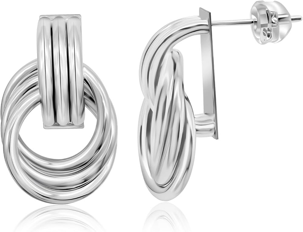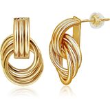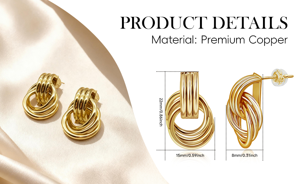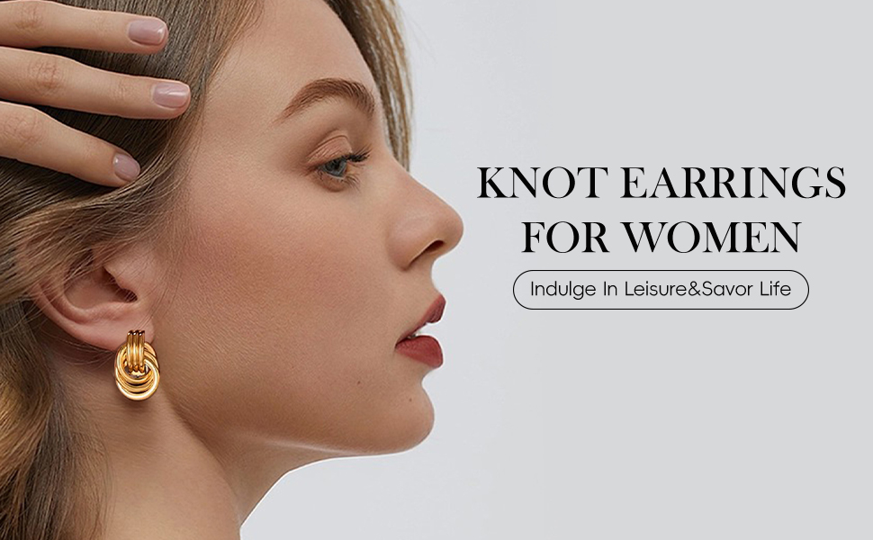 【تصميم عقدة أنيق】: أقراط كلاسيكية مملوءة بالذهب عيار 18 قيراط ترمز إلى الحب والوحدة، وتتميز بتصميم حلقة أنيق يضيف رقيًا سهلاً إلى أي ملابس.