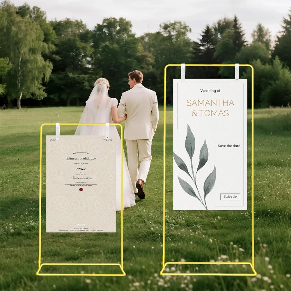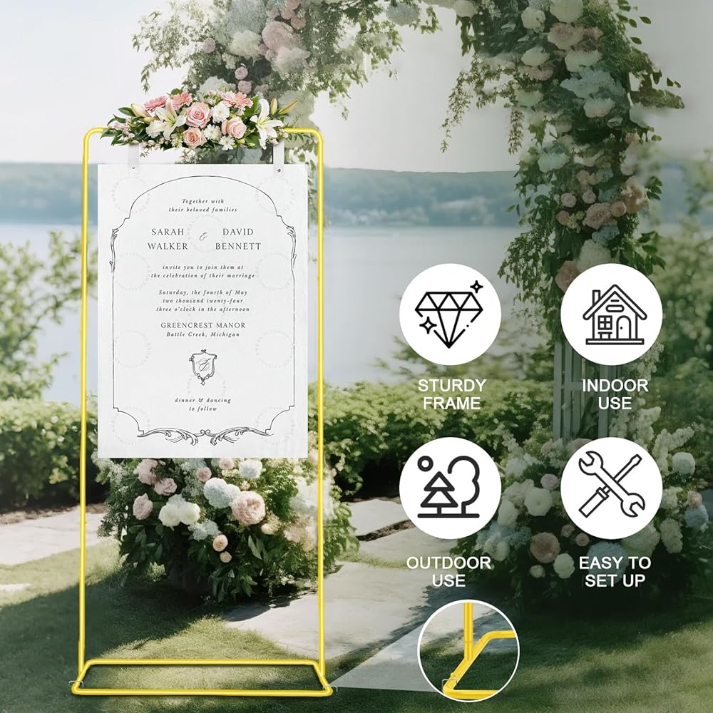 • 【حامل لافتة زفاف قابل للتعديل】نقدم ترحيبنا بعلامة الزفاف الخاصة بنا خيارين للارتفاع قابلين للتعديل - 30 بوصة عرض × 50 بوصة ارتفاع أو 30 بوصة عرض × 68 بوصة ارتفاع - إنه مثالي لعرض لافتة الترحيب الخاصة بك لحفل الزفاف أو حامل لافتة الترحيب. أربعة أوتاد أرضية متضمنة (15 سم/5.9 بوصة) تضمن الثبات في الهواء الطلق. يمتزج اللمسة النهائية الأنيقة بسهولة مع أي ديكور، مما يضمن أن لافتة الترحيب الخاصة بك تجذب الانتباه، مما يجعل حفل زفافك مميزًا ولا يُنسى حقًا مع حامل لافتة الترحيب بالزفاف هذا.