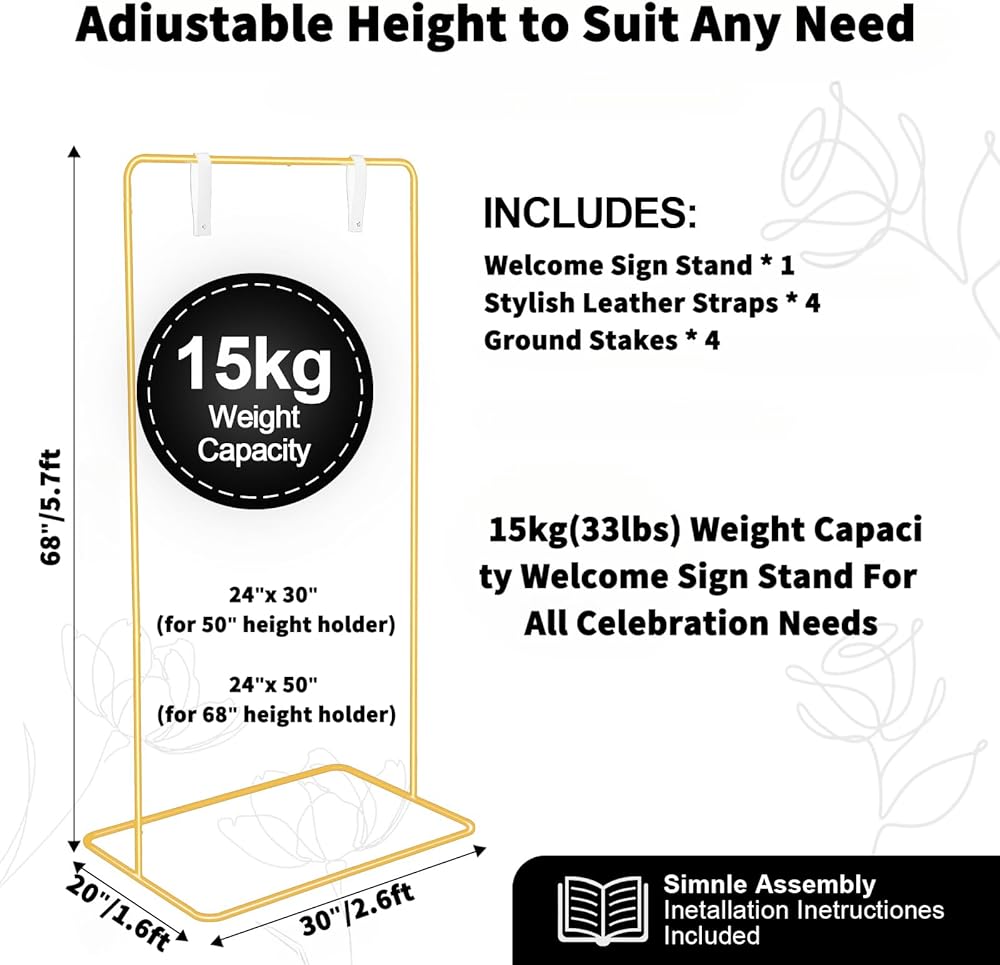• 【تصميم حديث وبسيط】تم تصميم حامل الحامل Drtenvd لللافتة مع وضع البساطة في الاعتبار، مما يجعلها سهلة التجميع. أربعة تعليق جلدية كلاسيكية تضيف لمسة من الأناقة العصرية لعلامة الزفاف الترحيبية. بفضل تعديلات الارتفاع السريعة والصورة الظلية الأنيقة، تتناسب بشكل جميل مع حفلات استقبال الأطفال وحفلات أعياد الميلاد والمؤتمرات وغير ذلك الكثير - مما يحول أي حدث إلى لحظة مميزة