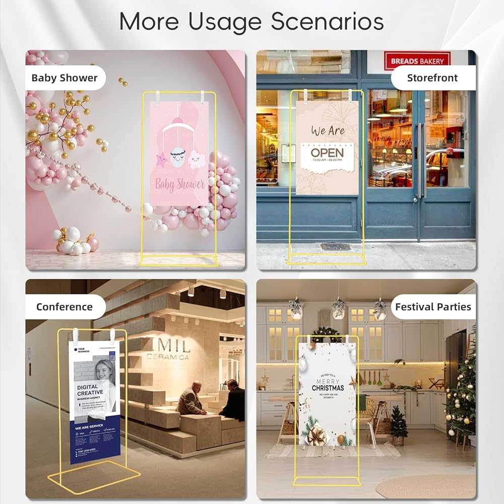 • 【4 أحزمة جلدية أنيقة】قم بتأمين حامل لافتة الترحيب الخاص بك باستخدام الأشرطة الجلدية الأنيقة. تحمل هذه الأشرطة الملولبة المتينة لافتات يصل سمكها إلى 0.4 سم، ولها قاعدة كبيرة ومستقرة توفر دعمًا متوازنًا، مع سعة وزن 15 كجم (33 رطلاً)، سواء كنت تعرض حامل لافتة الزفاف الخاص بك في الهواء الطلق أو لوحة ترويج متجر في الظروف العاصفة، فإن حامل العرض الخاص بك يبقى في مكانه المثالي