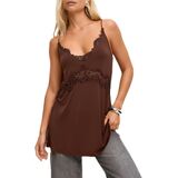 Matching: Women Silky Lace Trim Cami Tank Tops can pair with high waisted jeans, wide leg pants, baggy shorts, mini skirt, style with a leather jacket, coat, sweatshirt or wear solo as a sultry slip dress