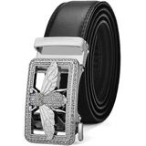 حزام جلد رجالي، حجر الراين، رأس بإبزيم على شكل نحلة، مشبك حزام أوتوماتيكي، سروال من جلد البقر مع حزام بسقاطة