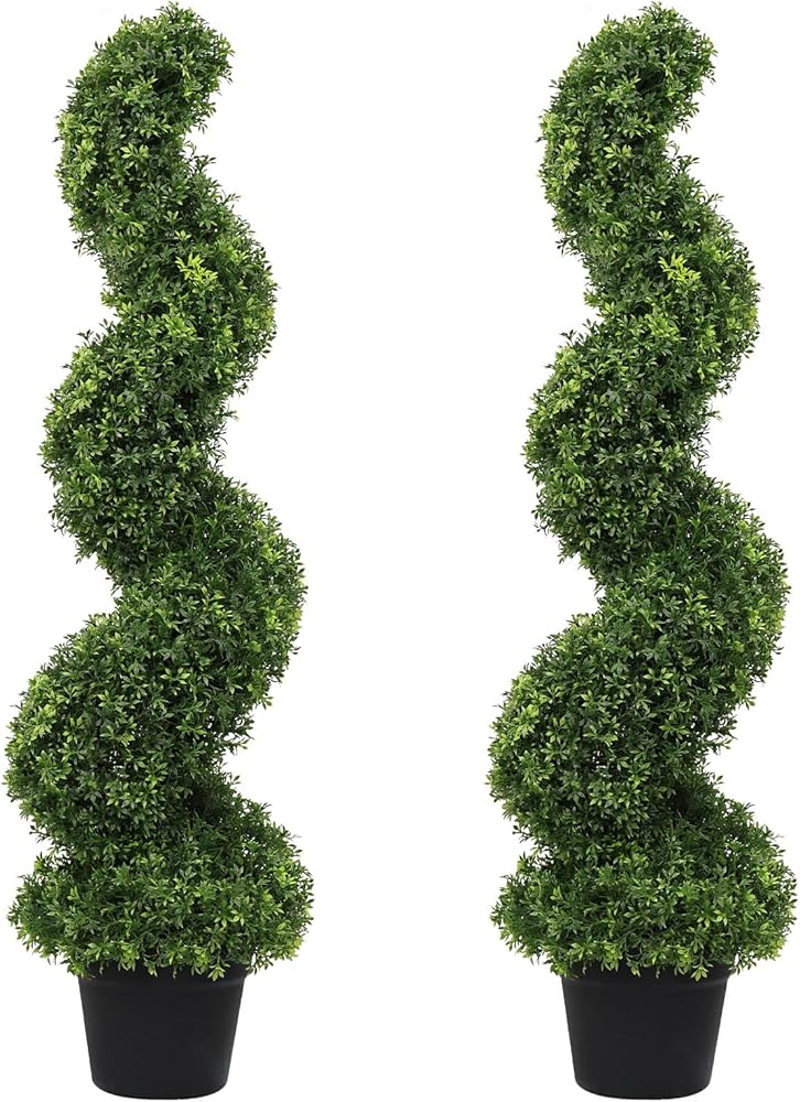 3ft دوامة خشب البقس توبياري الأشجار الاصطناعية في الهواء الطلق مجموعة من 2 - نباتات صناعية مقاومة للأشعة فوق البنفسجية للمزارعين الخارجيين، 36 "شجرة ملتوية وهمية لديكور الشرفة الأمامية