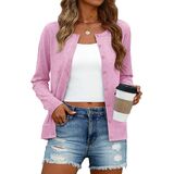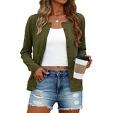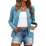 سترة نسائية عصرية بأكمام طويلة وأزرار سفلية مفتوحة من الأمام ورقبة دائرية وخفيفة الوزن سترة صوفية لربيع وصيف وخريف