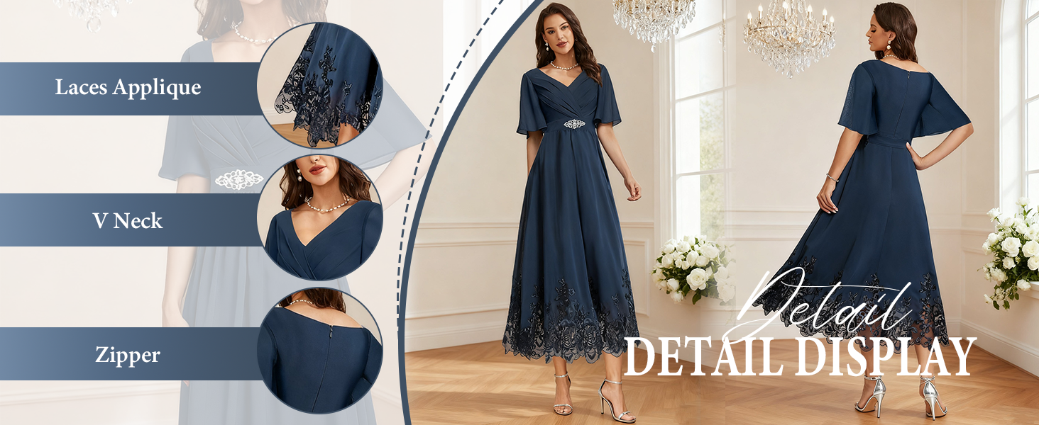 - المناسبة: مثالية كفساتين شيفون لأم العريس لحفلات الزفاف، فستان جدة العروس، فستان سهرة رسمي من الشيفون بطول الشاي، والمناسبات الرسمية، والتجمعات الأنيقة