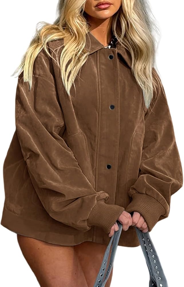 【المميزات】: سترة بومبر للنساء، سترات خريفية للنساء 2025، كم طويل، رقبة على شكل طية صدر، زر سفلي، Y2K، قميص قصير، لون موحد، سترة بولو، ملابس الشارع، عصرية وعصرية، ناعمة ومريحة، ملابس خريف 2025