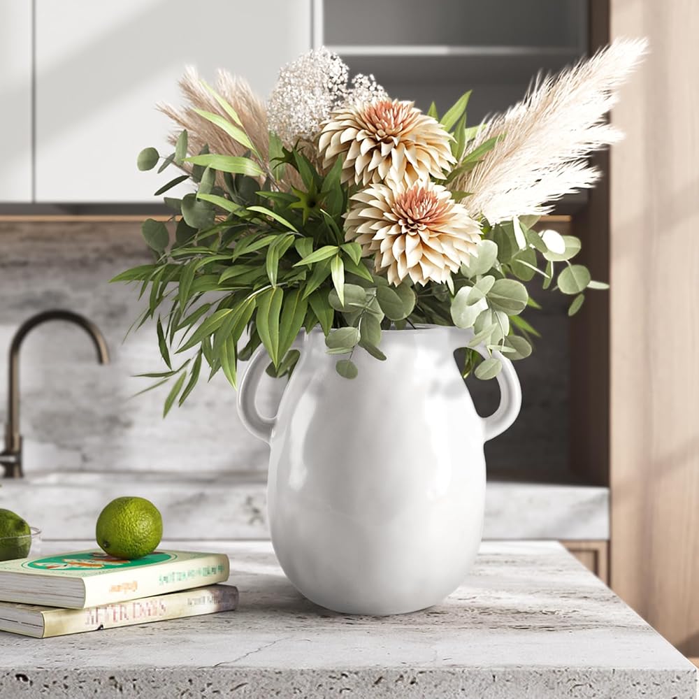 مزهرية زهور باللون الأزرق الداكن، مصنوعة يدويًا من السيراميك عالي الجودة مع لمسة نهائية ناعمة ولامعة، تتميز هذه المزهرية ذات المقبض المزدوج بشكل دائري منحني كلاسيكي يمتزج بسلاسة مع المزرعة الحديثة والمعاصرة والريفية. أو مخططات ديكور ساحلية، مما يضيف لمسة من الرقي إلى أي غرفة