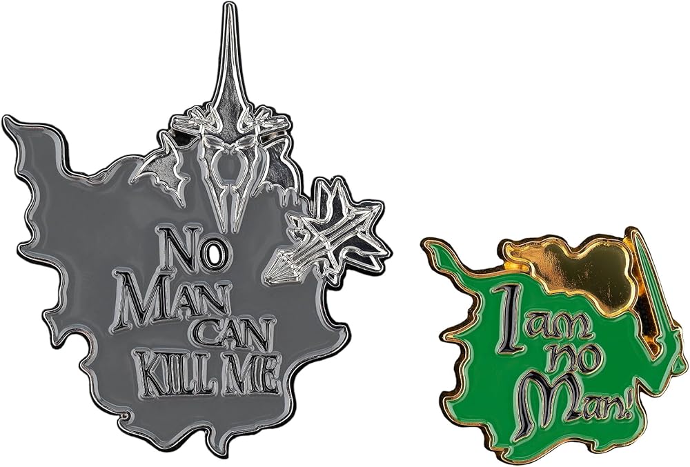 Add Éowyn's iconic moment of triumph to your collection with this dynamic pin set. Featuring the silhouettes of both Éowyn and the Witch-king, this collectible can be worn separately or layered to recreate the legendary scene. A perfect addition for any fan of Middle-earth, this pin set not only celebrates an iconic moment, but also embodies the indomitable spirit of those who fight for what is right. Pin it on and carry a piece of Éowyn's bravery with you wherever you go.
