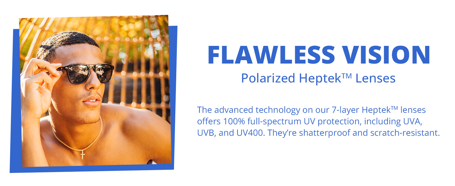 Polarized 7-Layer HepTEK Lenses for Every Occasion - Our foldable sunglasses feature polarized 7-Layer HepTEK lenses, providing 100% full-spectrum UV protection, including UVA, UVB, and UV400. The lenses are also scratch-resistant, ensuring long-lasting clarity and durability.