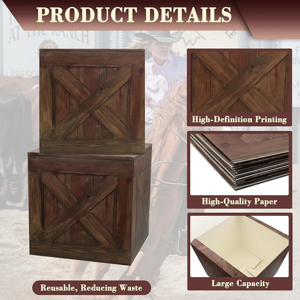 Cowboy party decorations crate can not only beautify the party venue but also serve as props for themed photos, gift boxes, snack boxes, etc., fulfilling multiple needs with one item.